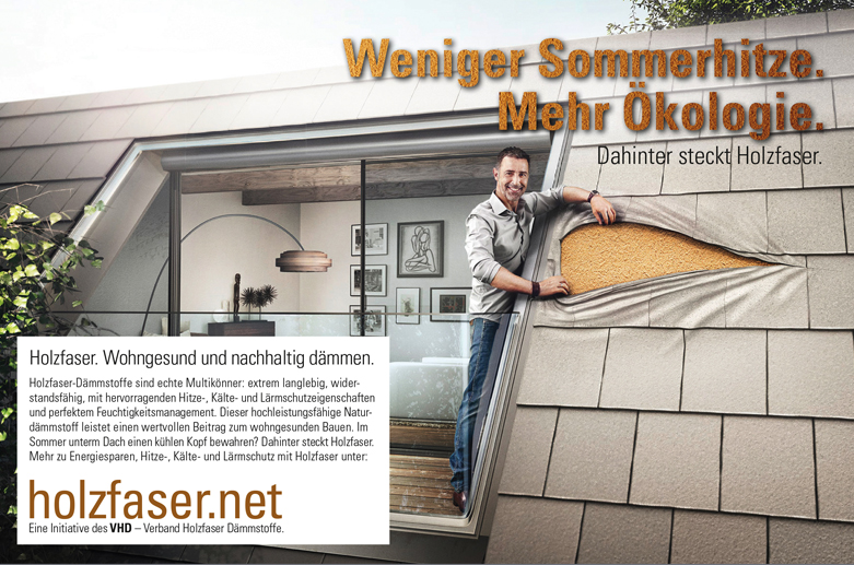 Der Verband der Holzfaserstoffe (VHD), eine Vereinigung aller namhaften Hersteller von Holzfaserdämmstoffen und Wärmedämmverbundsystemen mit Holzfaser, wurde 2003 gegründet und wendet sich mit seiner neuen Kampagne erstmals an Endverbraucher – die privaten Bauherren. Denn sie sind es, die letztlich darüber entscheiden, welches Material sie für ihren Bau oder ihre Sanierung einsetzen möchten. Die Produktpalette eröffnet dabei alle Möglichkeiten: Holzfaserdämmstoffe eignen sich für Dächer und Fassaden, Böden, Decken und Wände.